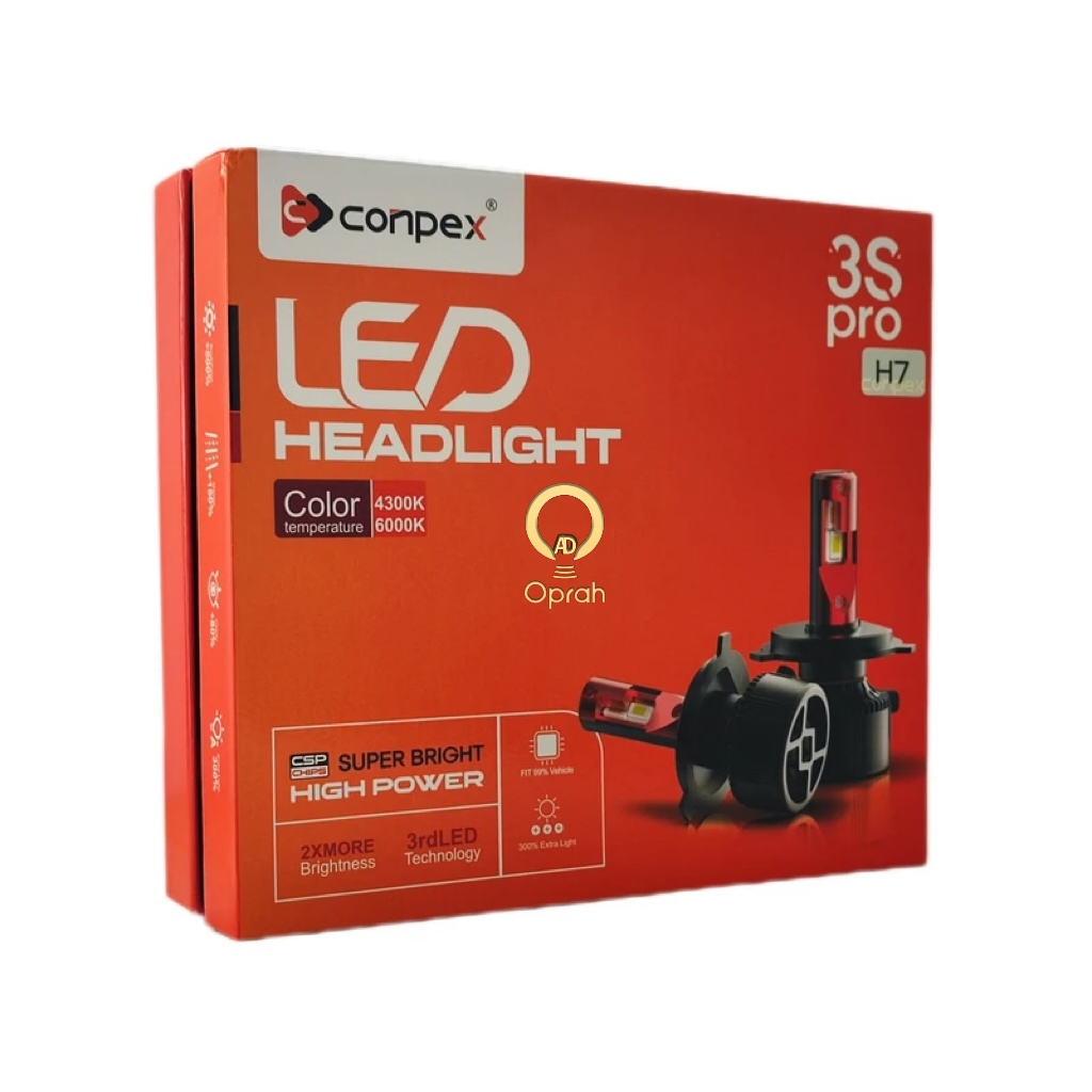 هدلایت CONPEX 3S PRO بسته دو عددی ، سوپر فن هوشمند با هیت سینک بهینه ، چیپ قوی CSP LED ، فوکوس نوری فوق العاده ، قابل نصب روی خودروهای داخلی و خارجی ، دارای کنباس برای رفع ارور سیستم ، رنگ نور تولیدی مانند لامپ های فابریک هالوژنی